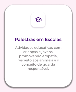 Promovemos palestras educativas e de conscientização em escolas,
